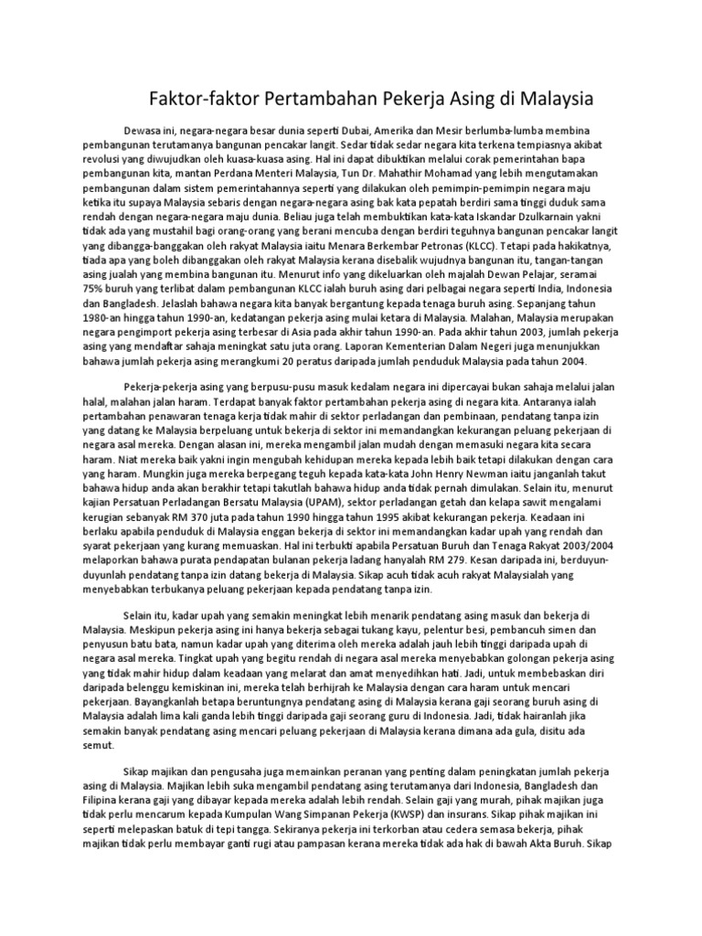 Penggajian pekerja asing di semenanjung malaysia kebanyakan tertumpu dalam sektor pembuatan, pembinaan (zakaria, 2005), manakala penggajian pekerja asing di sabah dan sarawak tertumpu dalam sektor pertanian (rahmah et al., 2017). See full list on imi.gov.my Analisis di sektor pekerjaan 1.0 abstrak malaysia mengalami jumlah kemasukan warga asing yang besar di dunia, terutamanya sebagai buruh berkemahiran rendah. Book cheap flights to malaysia. Statistik jabatan imigresen malaysia setakat 30 jun lalu menunjukkan seramai 1,781,598 pekerja asing sah berada di negara ini.